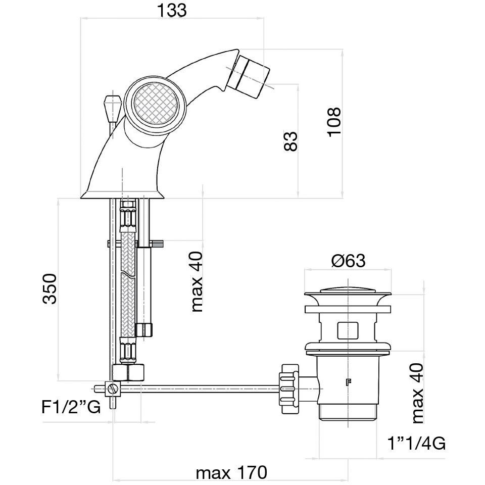смеситель для биде, донный клапан, подводка
