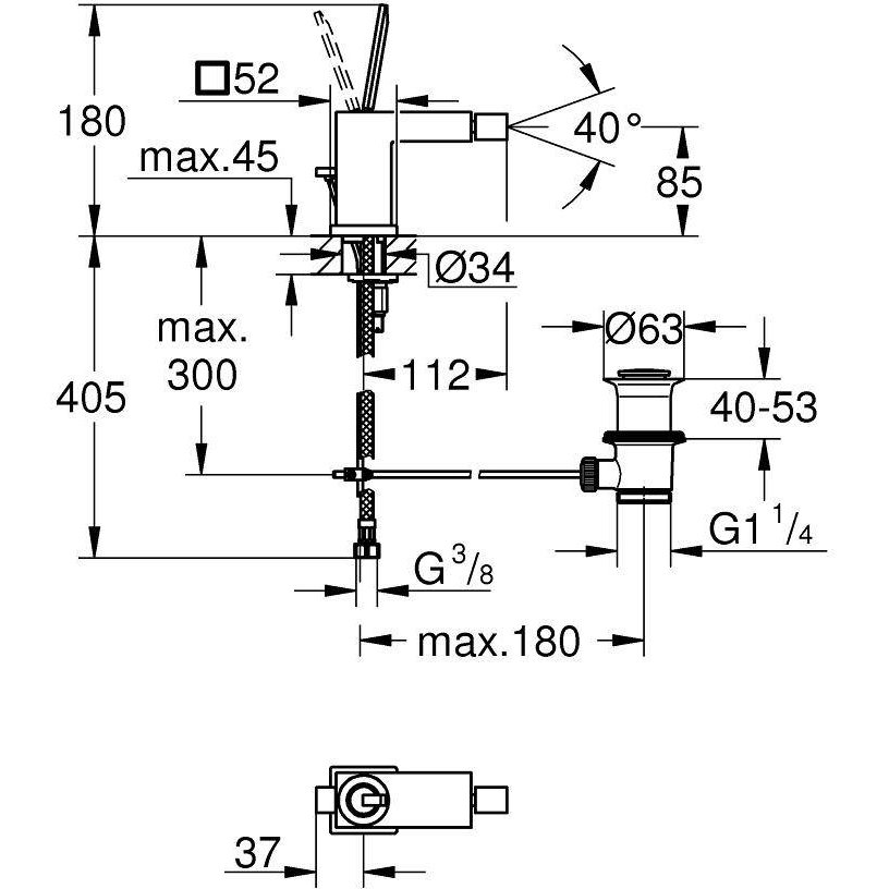 Смеситель для биде Grohe (Гроэ) Eurocube Joy с донным клапаном, хром (23664000)