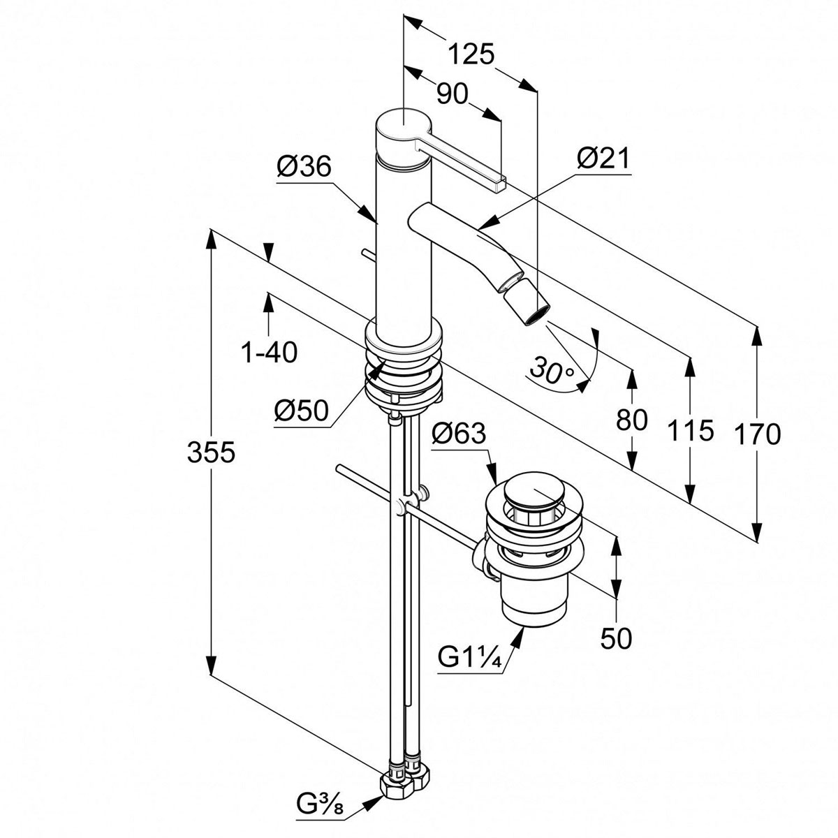 KLUDI Nova Fonte Pura 202163915 Смеситель для биде (чёрный матовый). Однорычажный смеситель для биде DN 15; литой рычаг; монтаж на одно отверстие; керамический картридж с ограничителем горячей воды; аэратор s-pointer Caché M 18,5 x 1; расход воды 4,5 л/мин при давлении 3 бара; донный клапан G 1 1/4 из металла; гибкая подводка G 3/8; крепежные элементы; высота излива 80 мм.