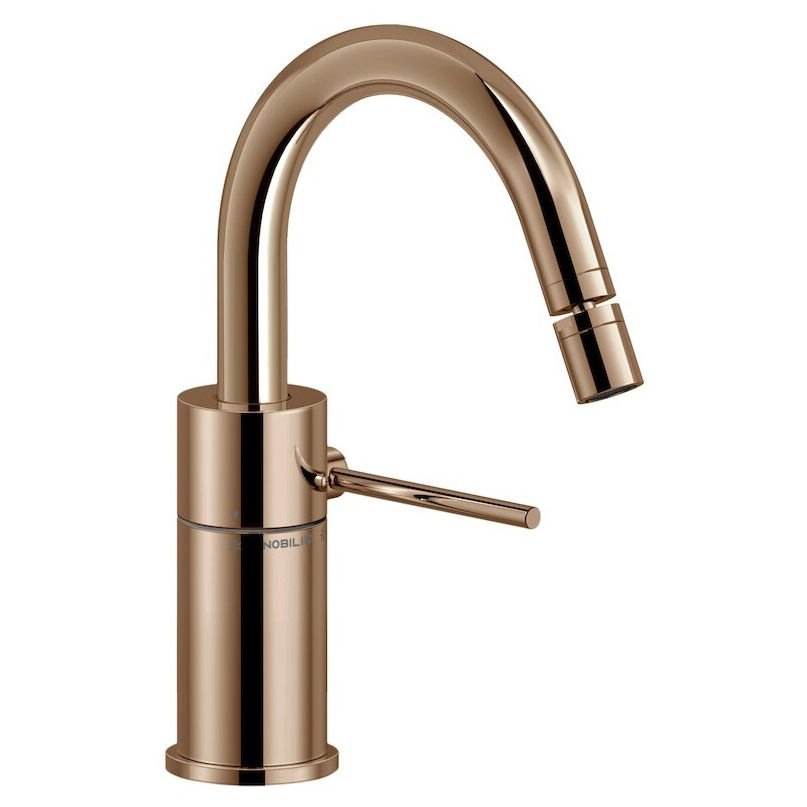 NOBILI Velis VE125139/2RCP Смеситель для биде (красное золото). Ограничитель мощности с открытием в холодной воде. Аэратор против известковых отложений M 20 x 1, 5 l/min. Шарнирный излив. Шарнирная форсунка. Нажимной слив ø 1 1/4”. Шланг из нержавеющей стали ø 3/8”.
