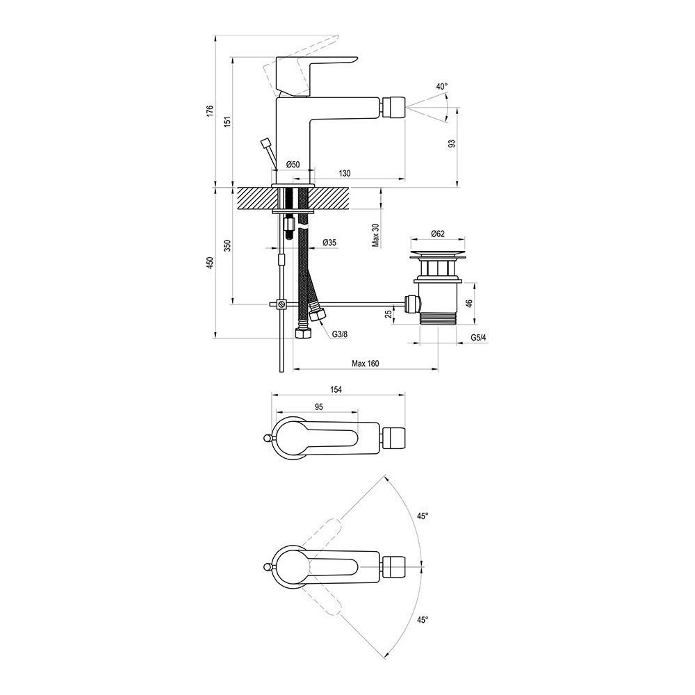 Смеситель для биде Webert (Веберт) Armony AM710402017, хром/золото