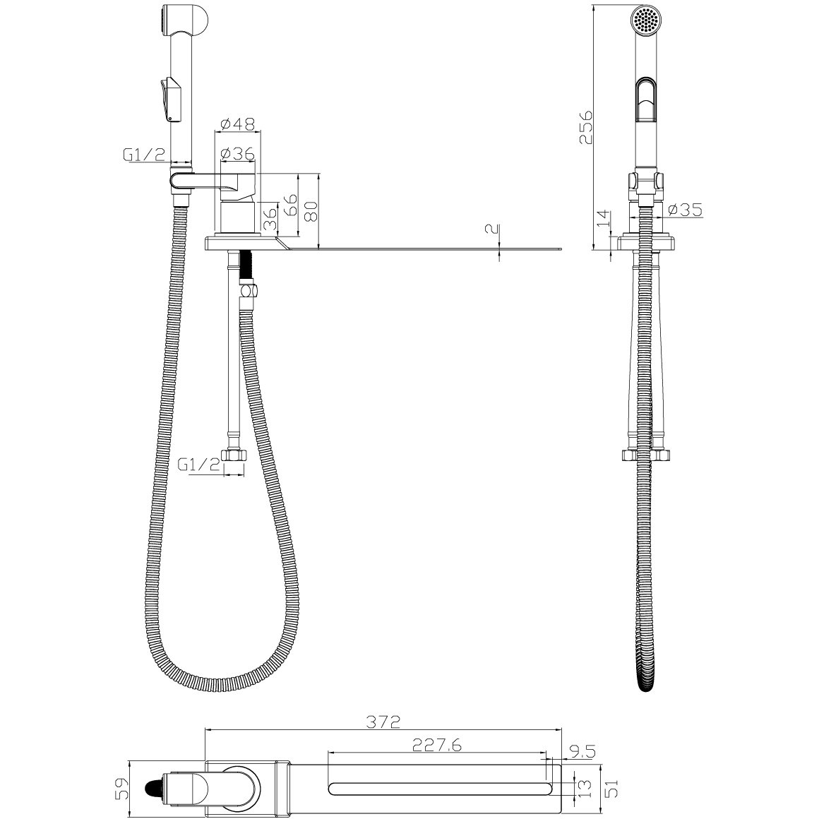 Смеситель для биде Rossinka (Росинка) X25-56 хром с гигиеническим душем