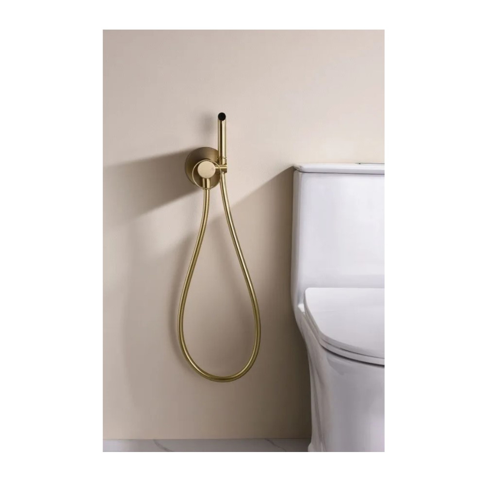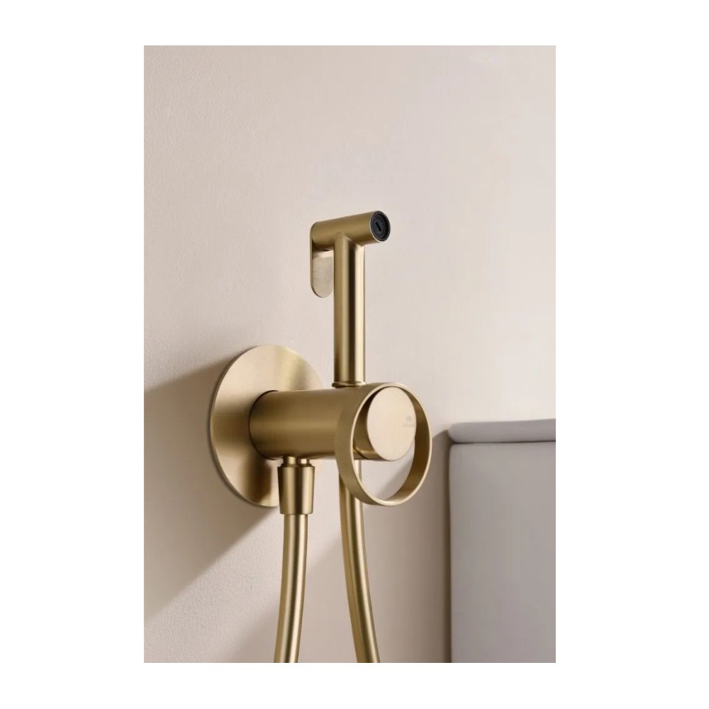 Встраиваемый смеситель с гигиеническим душем представляет собой идеальное решение для современного интерьера ванной комнаты. Этот смеситель выполнен в элегантном матовом золоте, что добавляет роскоши и стиля вашему пространству. С его помощью вы сможете не только удобно управлять подачей воды, но и использовать гигиенический душ, который обеспечивает дополнительный комфорт и гигиену.