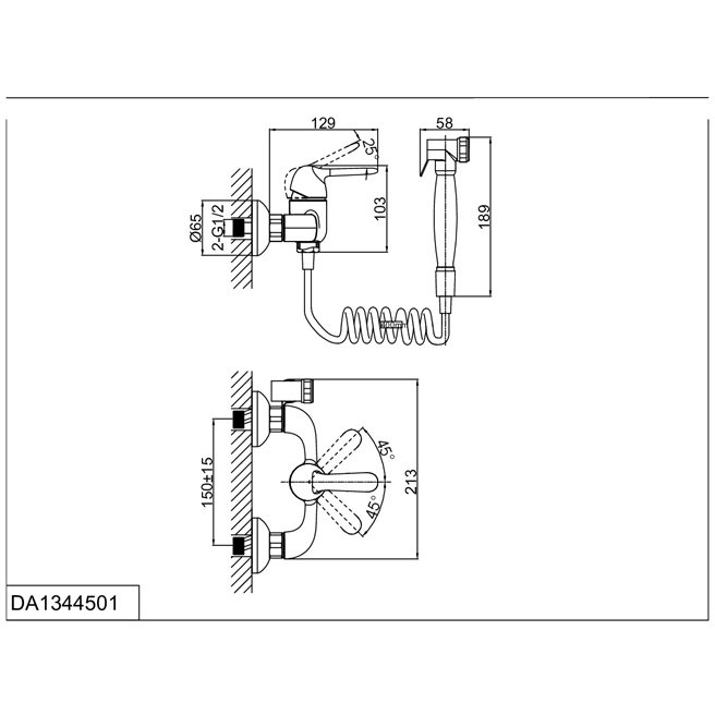 Смеситель с гигиеническим душем встраиваемый DK (ДК) Rhein Ambrosius (DA1344501) хром