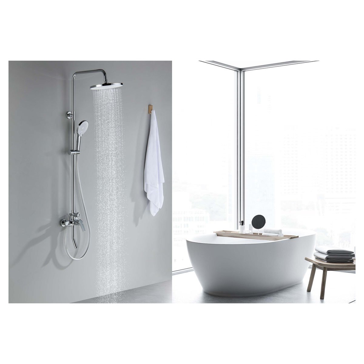 Комплектация:• Тропический душ • Душевая лейка • Рейлинг • Душевой шланг из ПВХ • Смеситель • Излив • S-образные эксцентрики • Декоративные отражатели • Монтажный комплект p>