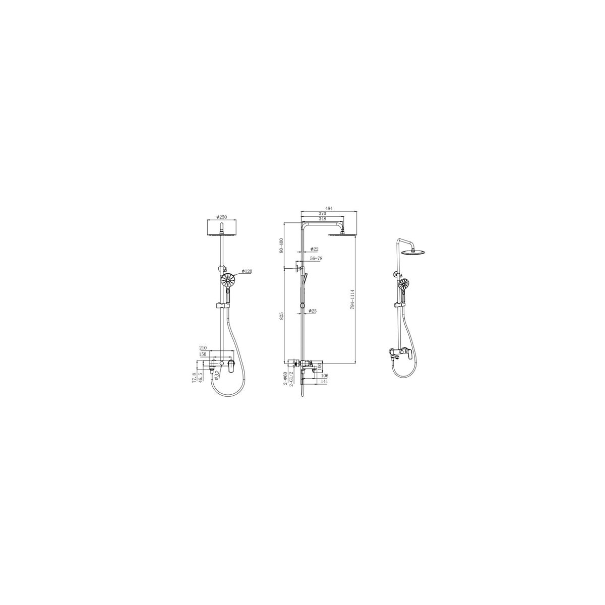 Размер/Диаметр верхнего душа (см): 25