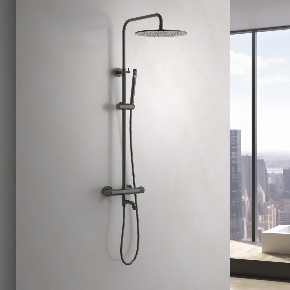 Доставка Душевая система с термостатом Timo (Тимо) Saona черное золото (SX-2380/18) из Москва в районы и города ЮВАО, ЮЗАО, ЮАО, Новомосковский АО, Одинцово, Подольск, Щербинка, Троицк, Строительный рынок Славянский мир, 41-й км МКАД, бывшая Мельница, Красногорск, Домодедово, Тёплый стан, Коммунарка, Мосрентген, Видное, Мамыри, Краснознаменск