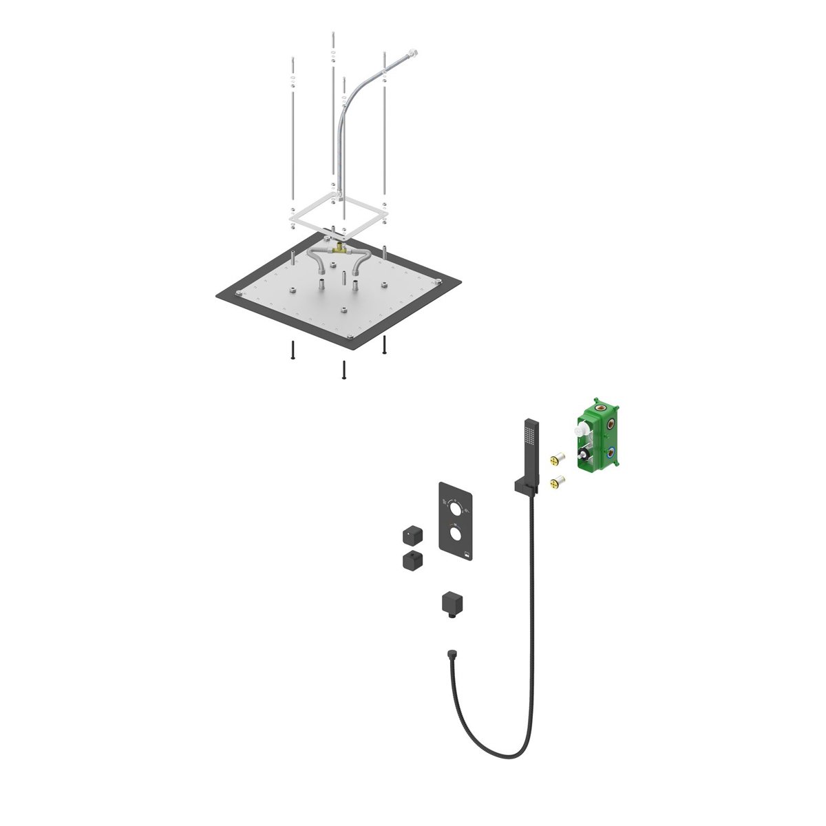 Комплектация:Подводка к тропическому душу - 1 шт. Крепежные винты с гайками (комплект) - 4 шт. Металлическая пластина - 1 шт. Муфты с резьбой - 4 шт. Лейка тропического душа (латунная) - 1 шт. Крепежные винты - 4 шт. Ручной душ (латунный) - 1 шт. Держатель ручного душа - 1 шт. Шланг душа 1,5 м (латунный) - 1 шт. Встраиваемый блок смесителя - 1 шт. Декоративная накладка (латунная) - 1 шт. Ручка переключения режимов "ручной душ", "тропический душ" - 1 шт. Ручка термостата - 1 шт. Отвод из стены с подключением шланга душа - 1 шт. Инструкция - 1 шт. p>