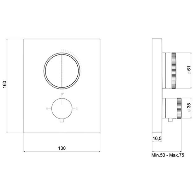 Смеситель Almar (Алмар) Core для душа, встраиваемый, термостатический, с кнопочным управлением для 2-х потребителей, цвет: хром E176682.CR