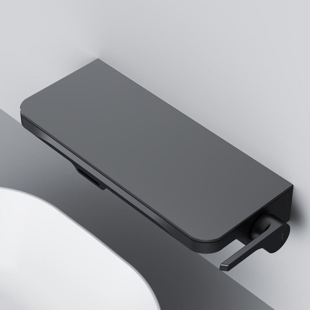 Еще больше полезного пространства: смеситель выполнен в виде вместительной полочки. Внушительный размер полки (35 см) позволяет хранить все любимые средства под рукой, а эстетичный силуэт станет настоящим украшением современной ванной комнаты.