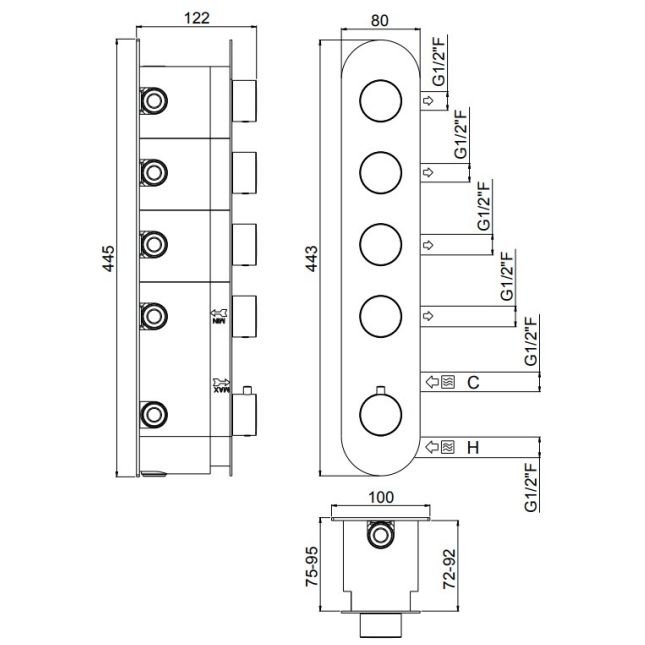 Carimali ILTONDO Внешняя часть вертикальная термостатического смесителя с 4 запорными вентилями,цвет хром
