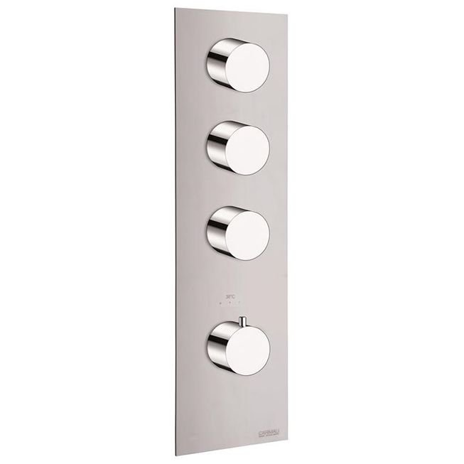Carimali ILTONDO Внешняя часть вертикальная термостатического смесителя на 3 потребителя. Квадратная пластина и круглые ручки. хром