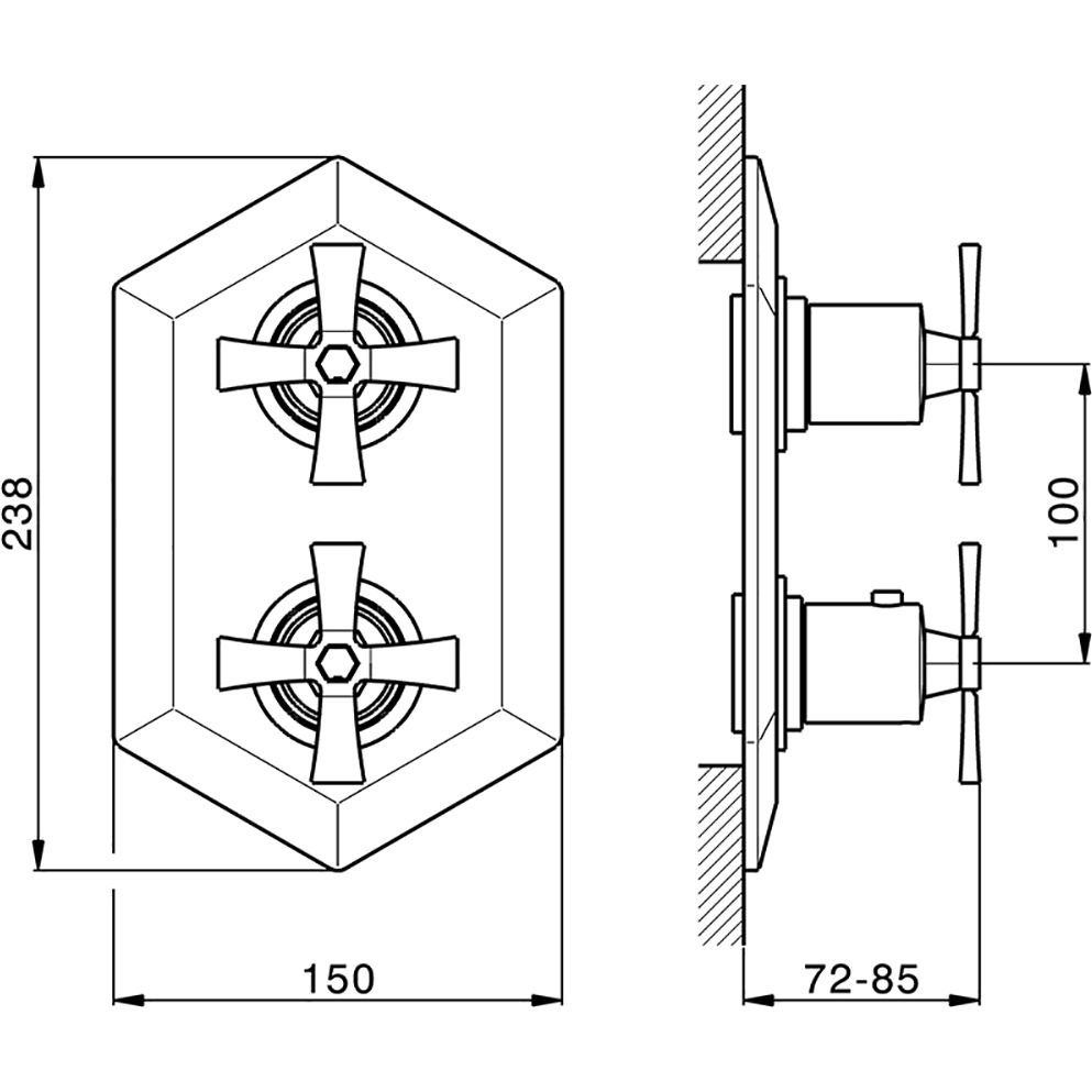 CISAL Cherie Внешняя часть встраиваемого термостатического смесителя с переключателем на 3 положения, цвет хром/черный матовый