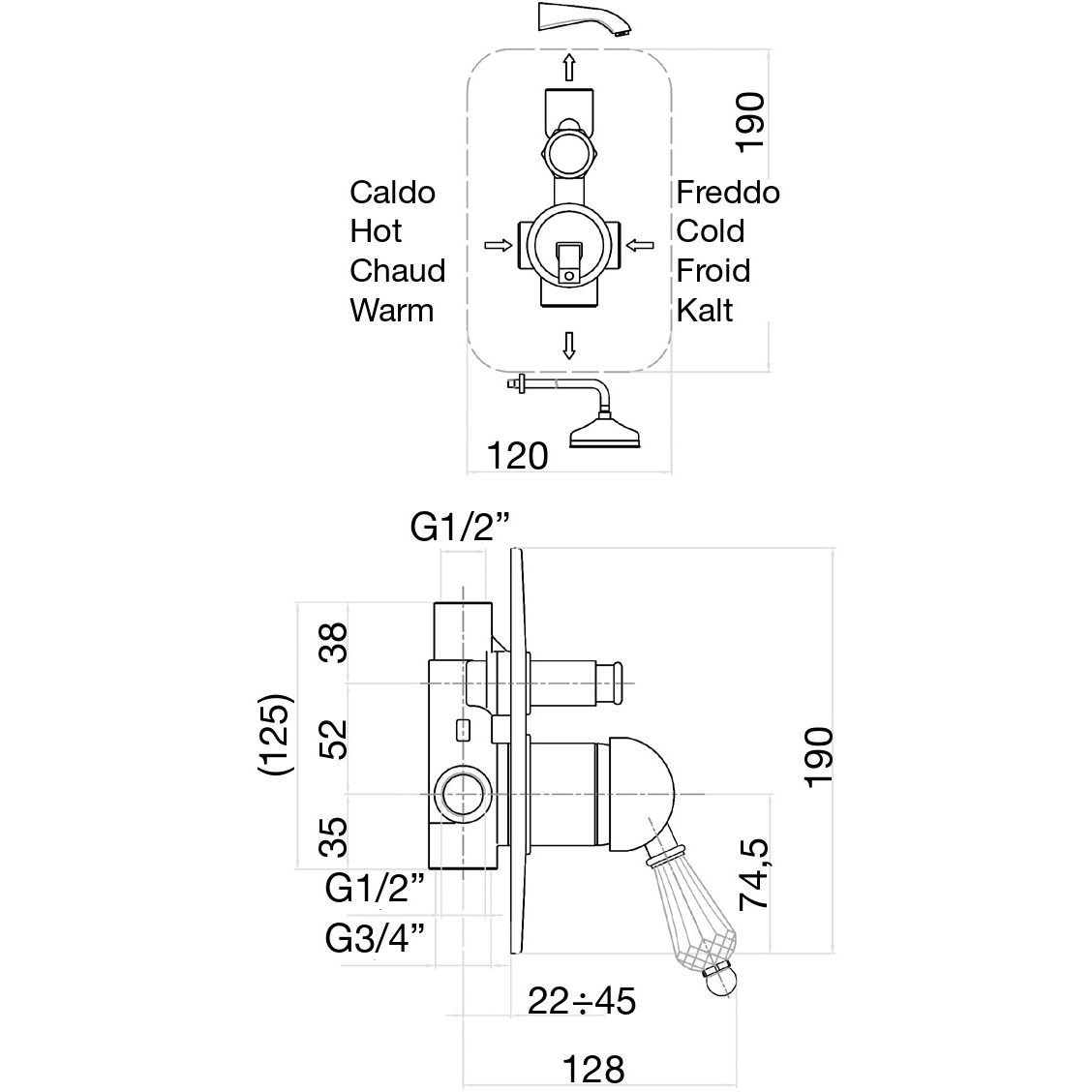 Смеситель для душа Fiore (Фиоре) Imperial- Sky (Swarovski) 82CO5134, хром/золото