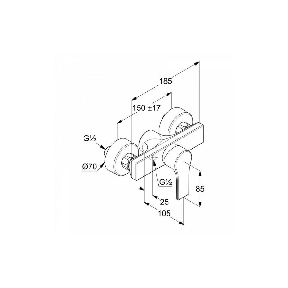 KLUDI ZENTA SL 488700565 Смеситель для душа (хром). Однорычажный смеситель для душа DN 15: литой рычаг, настенный монтаж, расход воды 28 л/мин при давлении 3 бара, керамический картридж с ограничителем горячей воды, клапан защиты от обратного потока, отвод для душа G 1/2, эксцентрики G 1/2 x G 3/4.