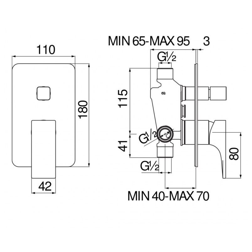 Смеситель для душа Ganzer (Ганзер) GZ12157 скрытого монтажа, хром