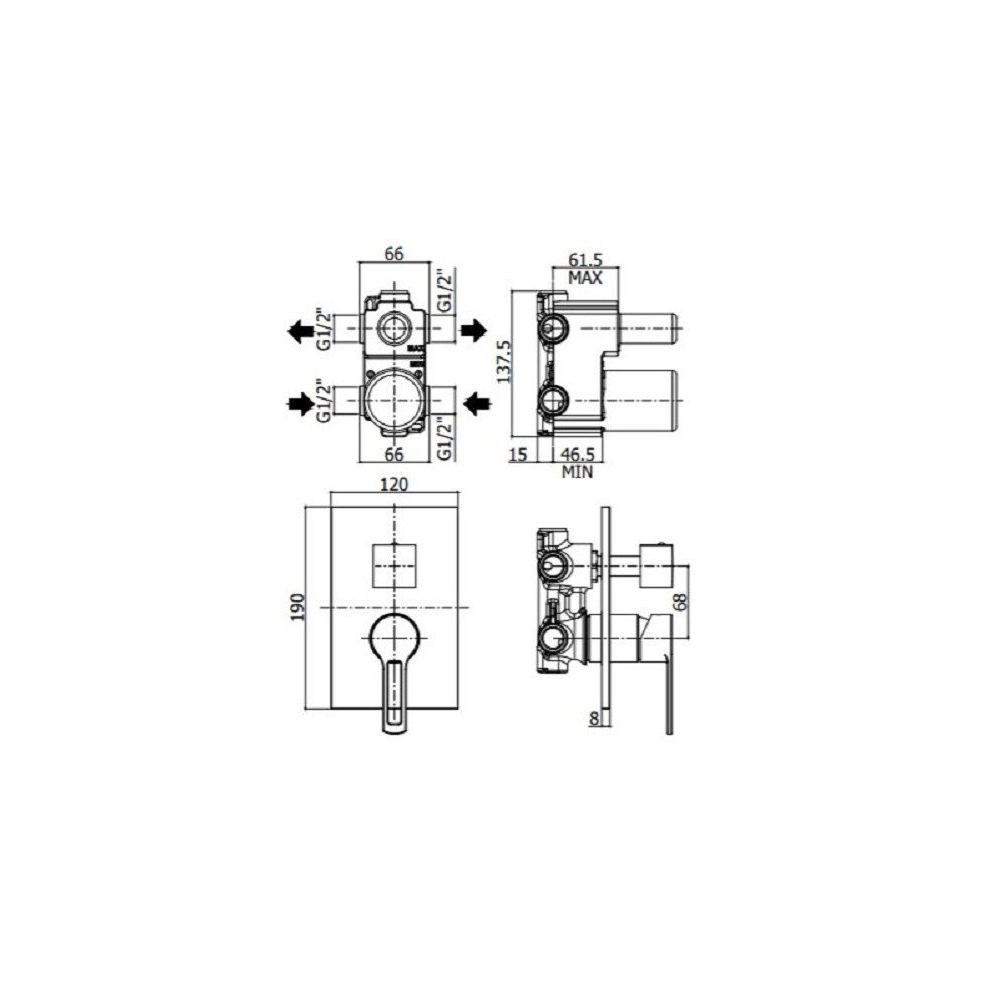 Paffoni Ringo RIN018CR/M Смеситель для ванны (хром). Встраиваемый. С внутренним механизмом, переключатель на два выхода + 1 комбинированное положение.