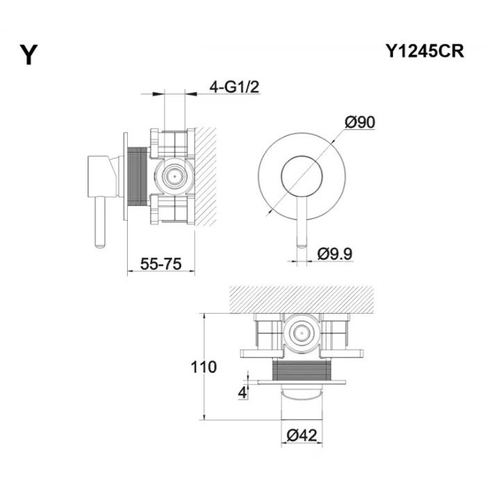 один выход смешанной воды: 1/2”;