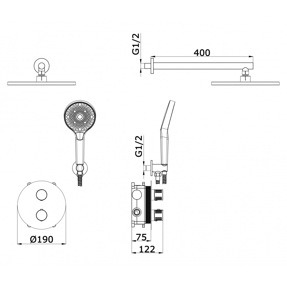 Душевой комплект скрытого монтажа Hansen (Хансен) HL34095-C Черный