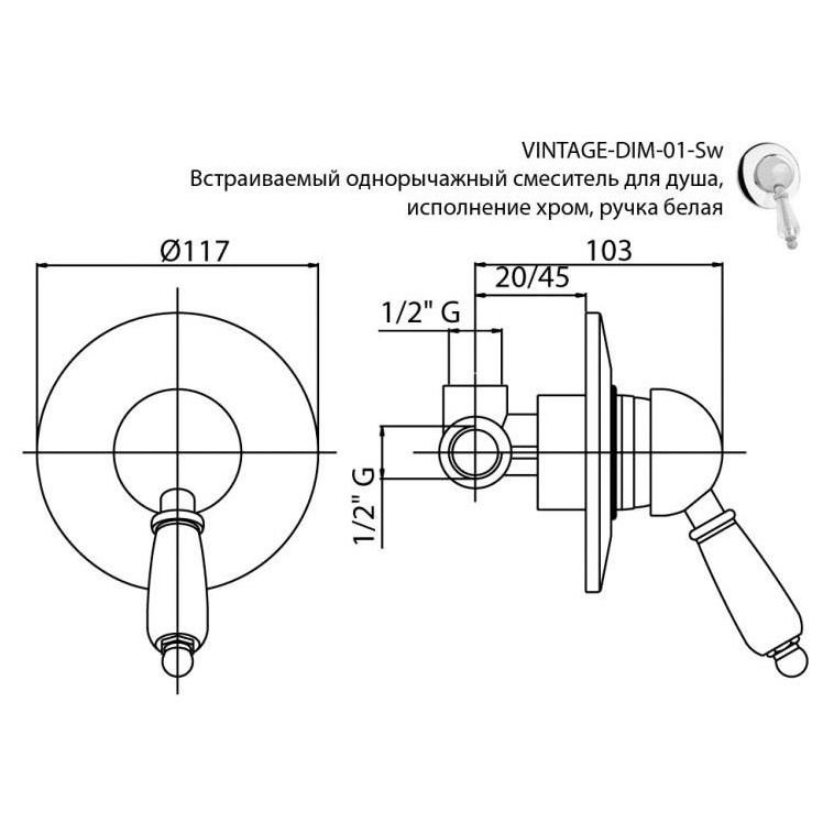 Смеситель для душа встраиваемый Cezares (Цезарис) Vintage хром,Swarovski (VINTAGE-DIM-01-Sw)