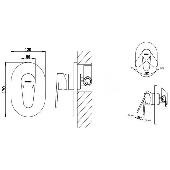 Комплектация:внешняя часть смесителя, внутренняя часть смесителя p>