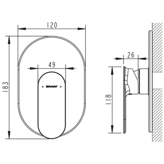 Смеситель для душа встраиваемый на 1 потока Bravat (Брават) Gina PB865104CP-ENG, хром