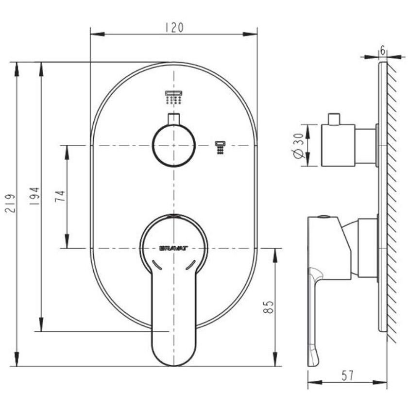 Смеситель для душа встраиваемый на 2 потока Bravat New Moon P69191C-2-RUS, хром