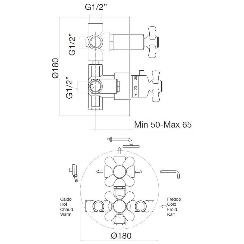 Смеситель для душа встраиваемый с термостатом Webert (Веберт) Ottocento OT970902015, хром