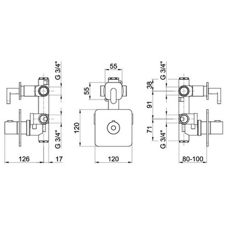 Смеситель Kaiser (Кайзер) Quadris скрытого монтажа для душа Хром (25017)