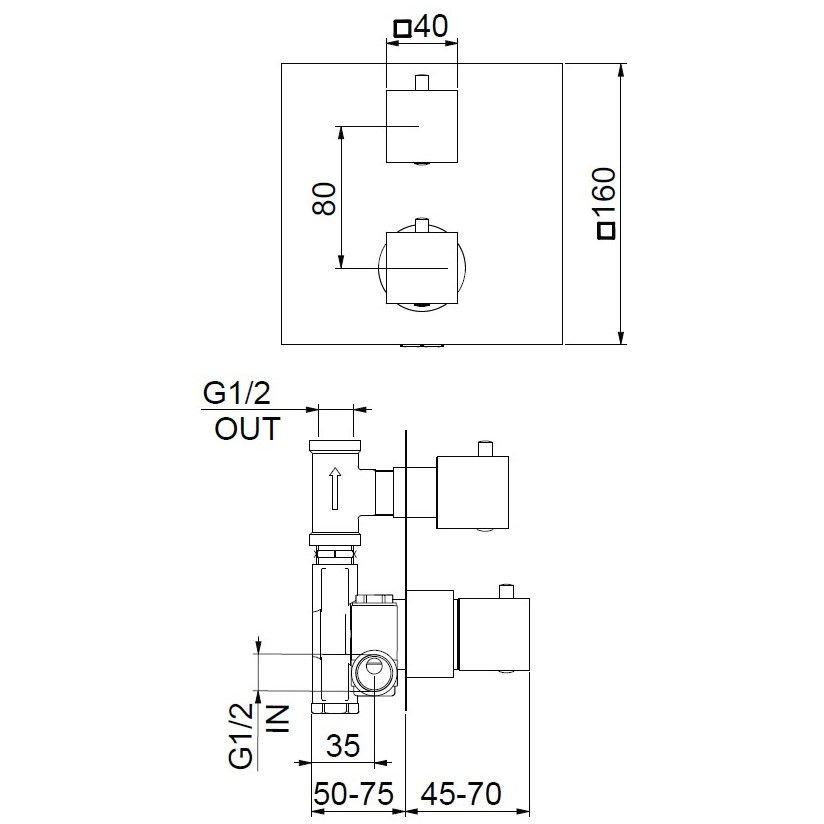 Смеситель для душа встраиваемый с термостатом Webert (Веберт) Elio EL972101015, хром