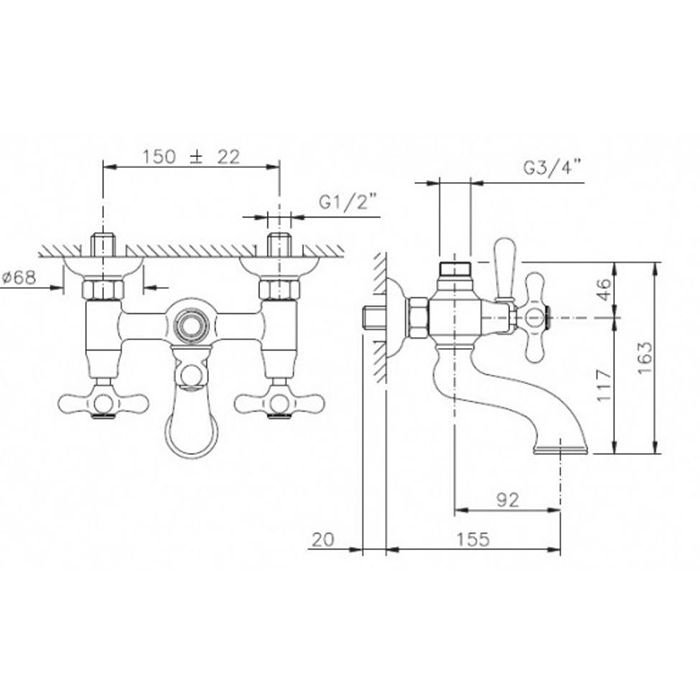 Смеситель Nicolazzi (Николации) Nuova Brenta для ванны, с переключателем ванна/душ, вывод сверху 3/4″ (для душ. стойки) , цвет: хром 2500CR