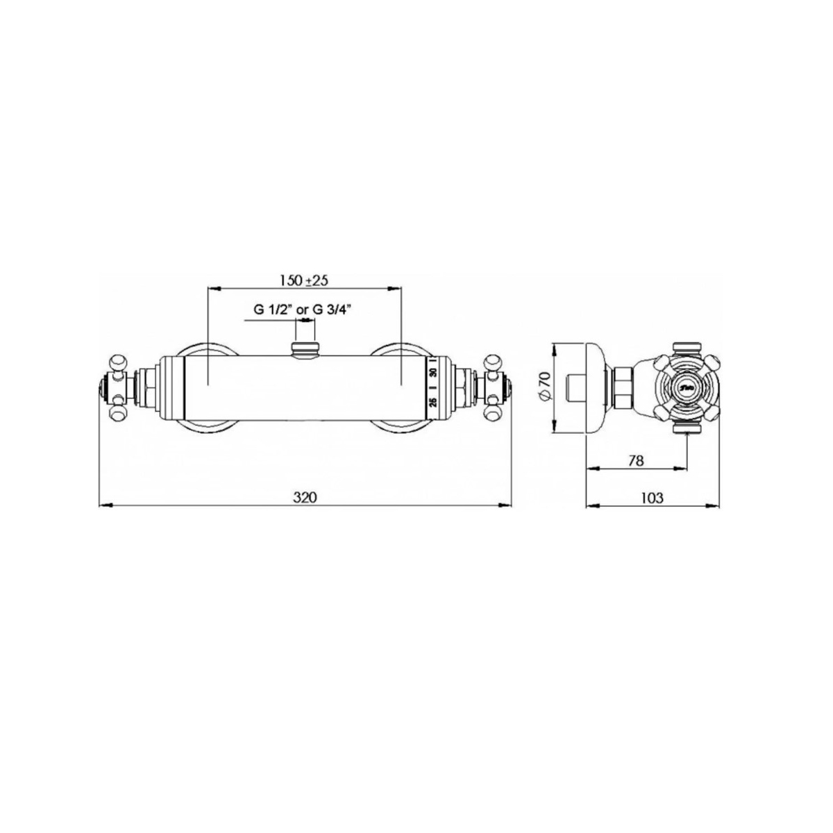 Смеситель термостатический для душевой колонны Cezares (Цезарис) на один выход, верхнее (жесткое подключение), хром GOLF-DS-T-01