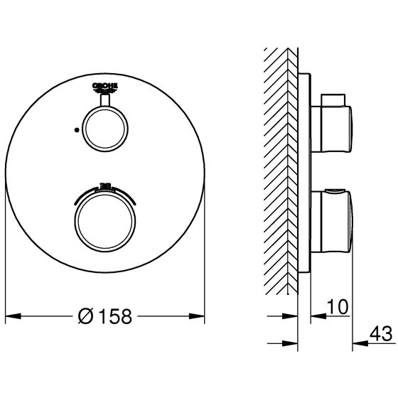 Внешняя часть термостата для душа Grohe (Гроэ) Grohtherm, круглая, хром (24075000)