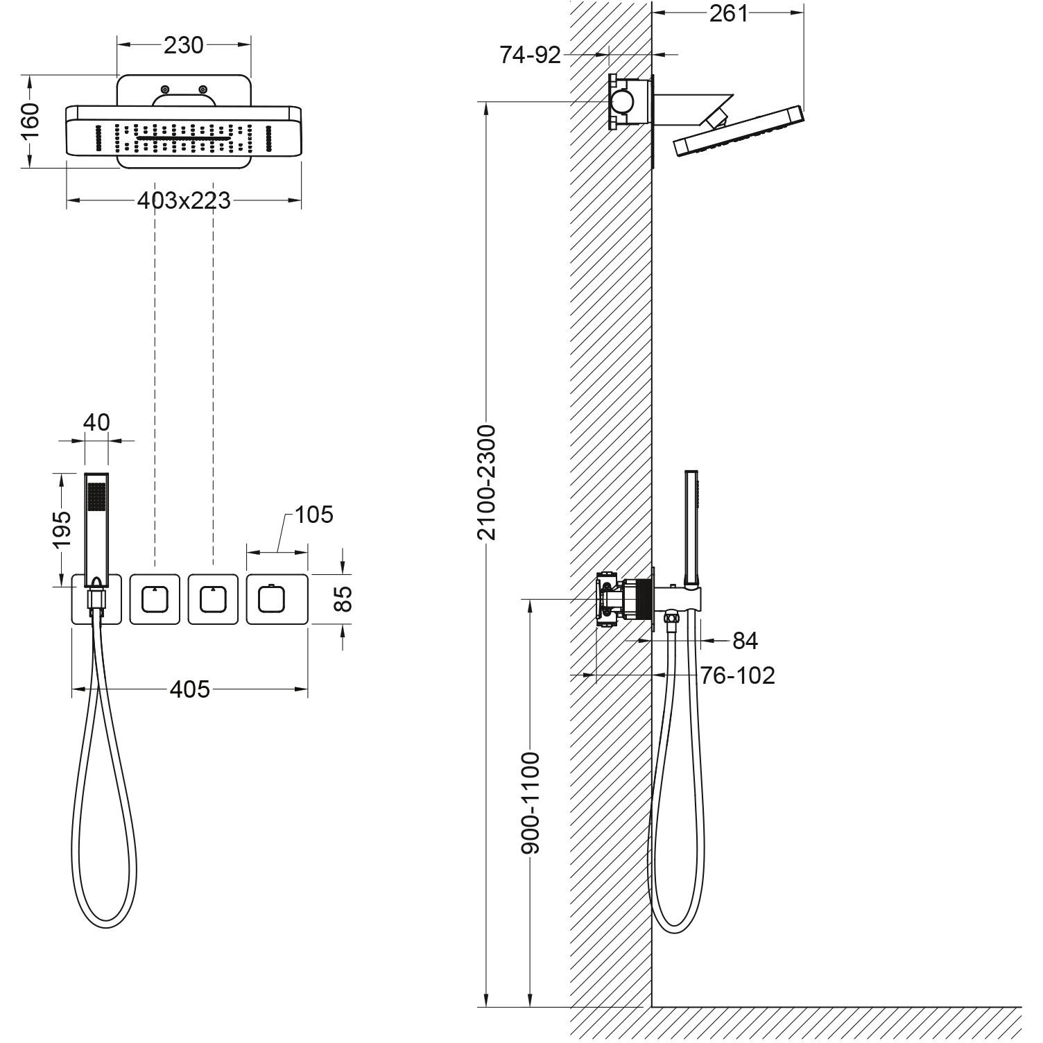 Форма верхнего душа:прямоугольная p>