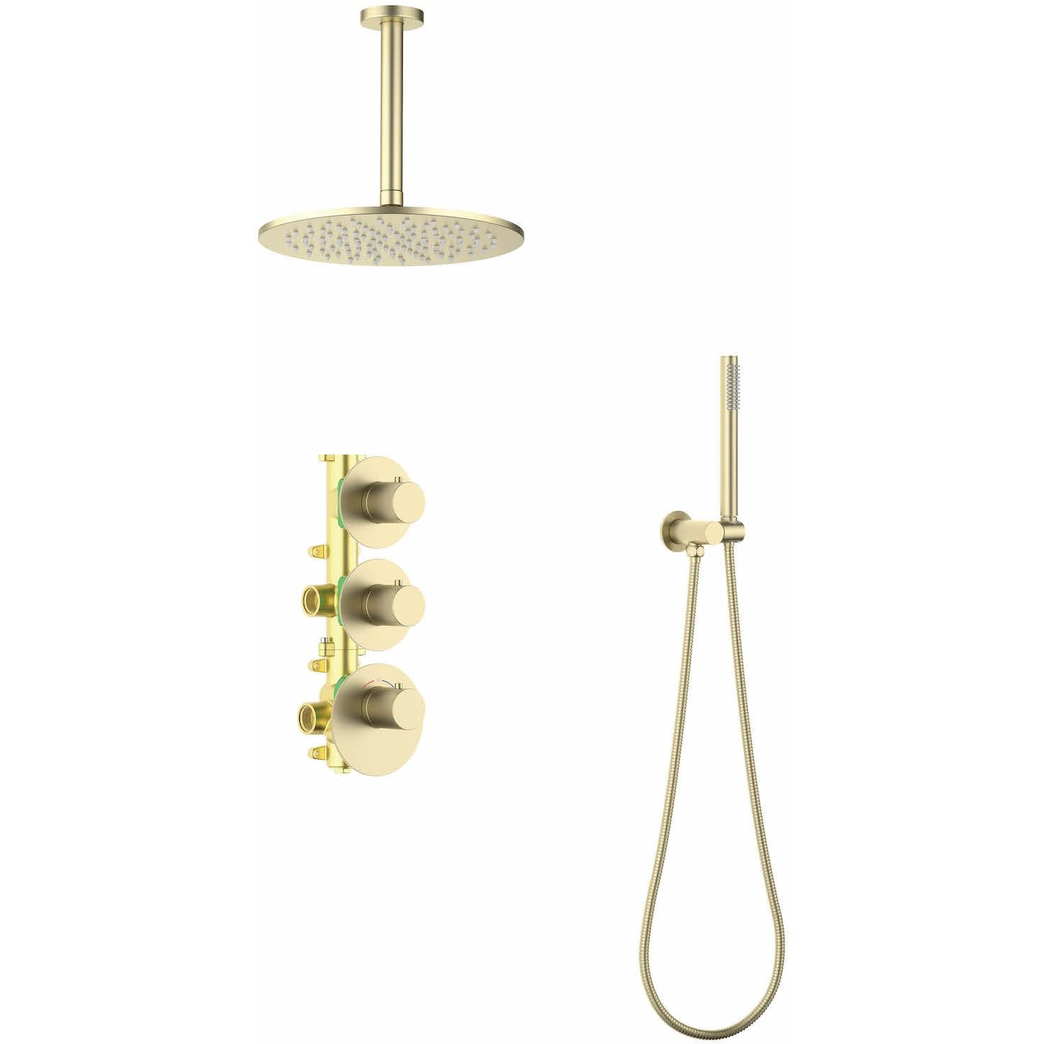 Цвет "матовое золото" никогда не выйдет из моды, во все времена драгоценный металл был признаком богатства. Душевая система с термостатом Saona 2399 относится к премиальному сегменту, предназначена для монтажа в полой или твердой стене. Верхний душ с вертикальным потолочным креплением выполнен из латуни. Термостатический картридж поддерживает стабильную температуру воды, обеспечивая максимально комфортные условия для принятия водных процедур. Регулируя напор воды в режиме "тропический душ" можно получить массажное воздействие различной интенсивности. Основные преимущества встроенной системы: элегантный внешний вид, все коммуникации и крепления спрятаны в стену, снаружи видны только декоративные элементы. Установить встроенную систему можно в любом месте. Регулировка температуры воды осуществляется ручкой термостата (расположена снизу). Включение режима "тропический душ" и регулировка напора осуществляется поворотом ручки дивертора (расположена сверху) влево. В положении ручки дивертора 12:00 режим "тропический душ" выключен. Для переключения в режим "ручной душ" поверните ручку дивертора (расположена по центру) от 12:00 против часовой стрелки. Увеличение напора воды регулируется поворотом ручки влево. В положении ручки 12:00 режим "ручной душ" выключен. Сложностей монтажа не возникает при установке элементов душевой системы опытным сантехником. Внимательно изучите инструкцию по монтажу и эксплуатации.