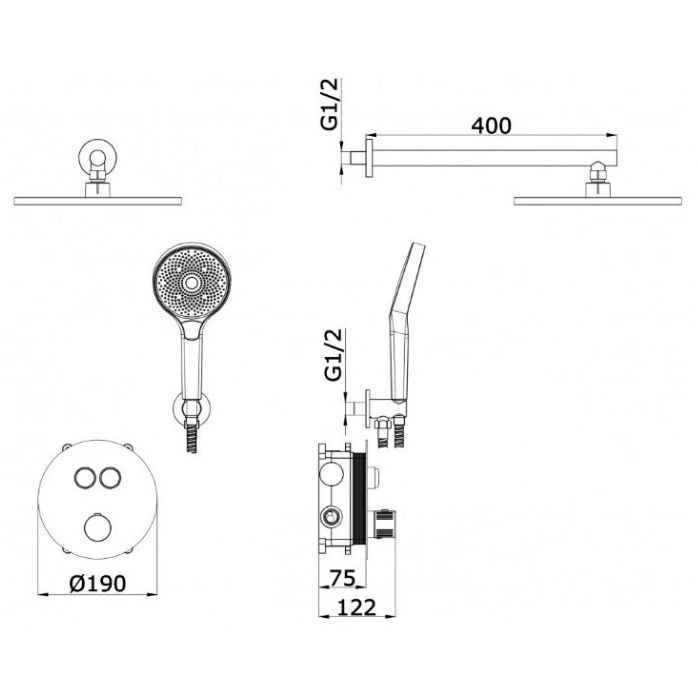 Свойства:скрытого монтажа, с тропическим душем, с ручным душем p>