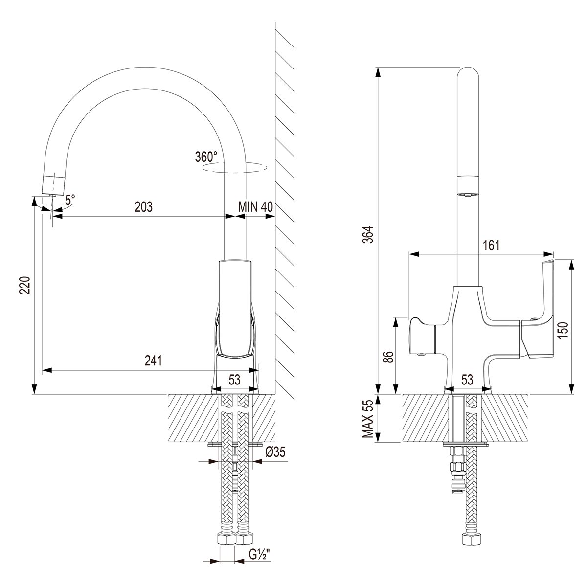 Длина излива (мм):203 p>