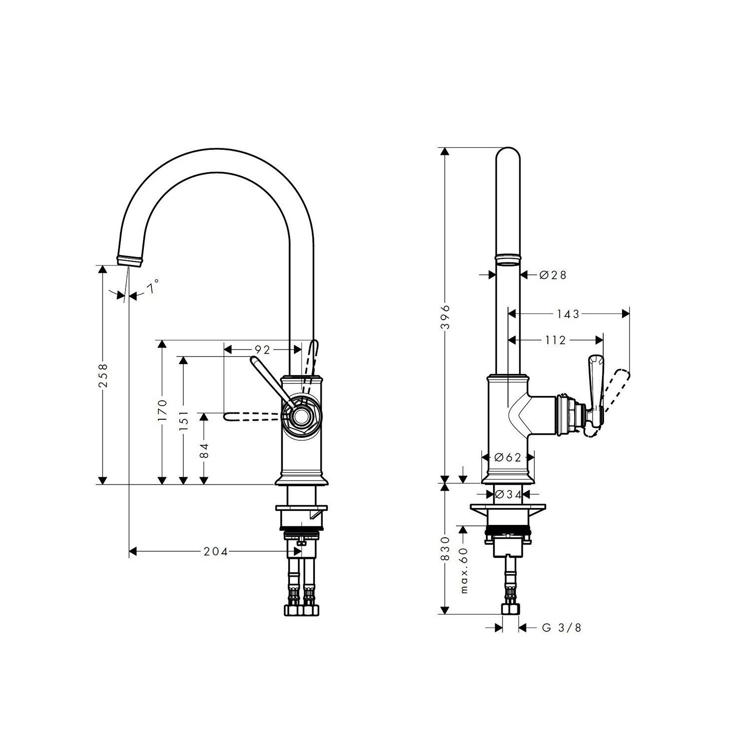 Кухонный смеситель Axor (Аксор) Montreux, однорычажный, 260, с поворотным изливом, 16580000 хром