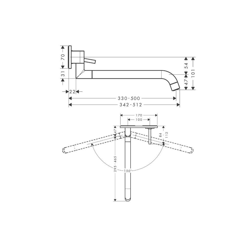 Кухонный смеситель Axor (Аксор) Uno, однорычажный, настенный, 38815800 сталь