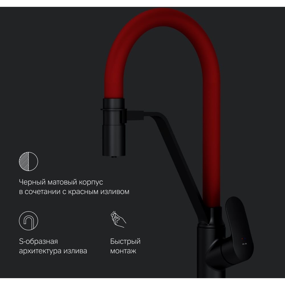 Доставка Смеситель Am.Pm (Ам.Пм) для кухни с каналом для питьевой воды и гибким изливом Like F8007828 черный,красный из Москва в районы и города ЮВАО, ЮЗАО, ЮАО, Новомосковский АО, Одинцово, Подольск, Щербинка, Троицк, Строительный рынок Славянский мир, 41-й км МКАД, бывшая Мельница, Красногорск, Домодедово, Тёплый стан, Коммунарка, Мосрентген, Видное, Мамыри, Краснознаменск