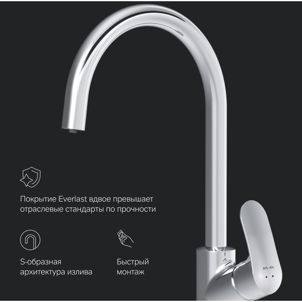 Смеситель Am.Pm (Ам.Пм) для кухни с каналом для питьевой воды Like F8007700 хром