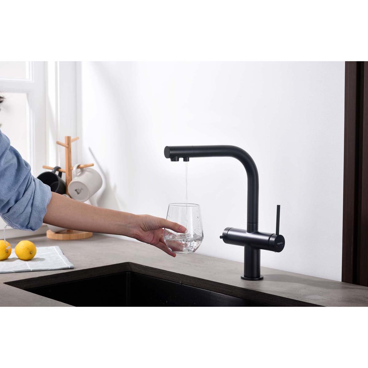 Смеситель Aquatek (Акватек) Европа для кухни с подключением к фильтру питьевой воды, матовый черный AQ1385MB