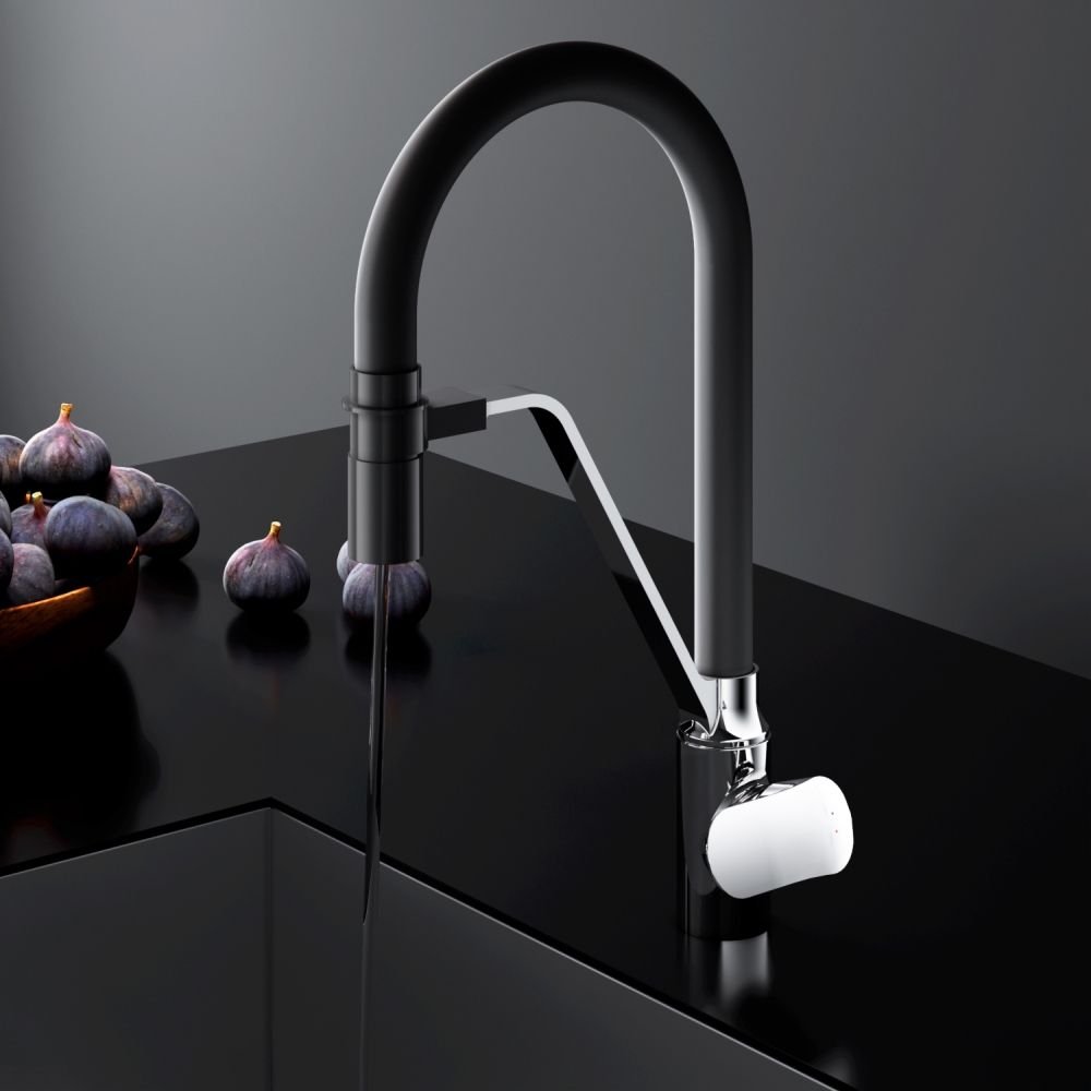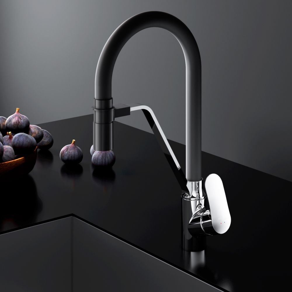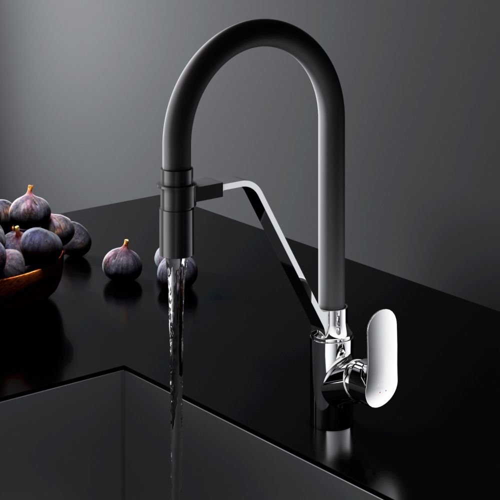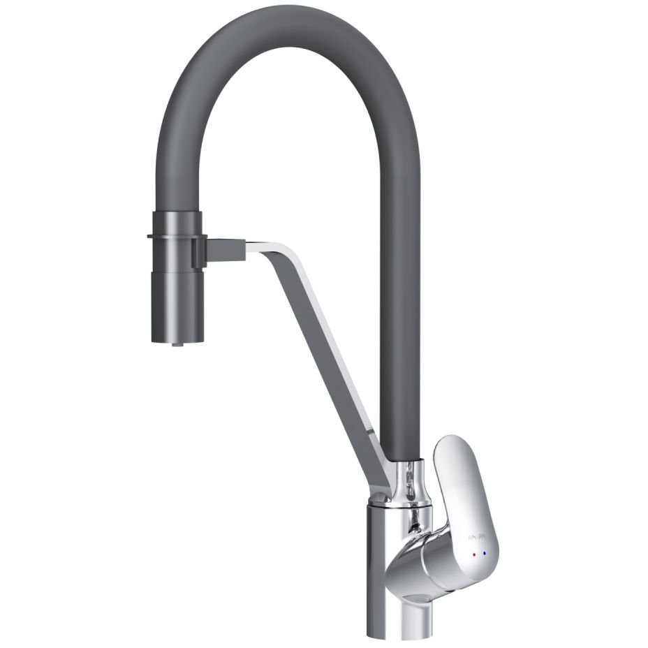 Смеситель для кухни Am.Pm (Ам.Пм) Like хром, гибкий излив, черный, канал для питьевой воды, F8007802