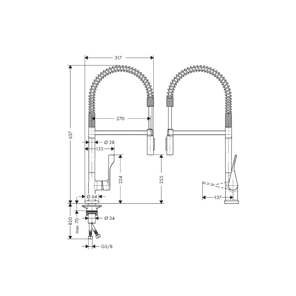 Смеситель для кухни Axor (Аксор) Citterio, однорычажный, 230, Semi-Pro, 39840000 хром