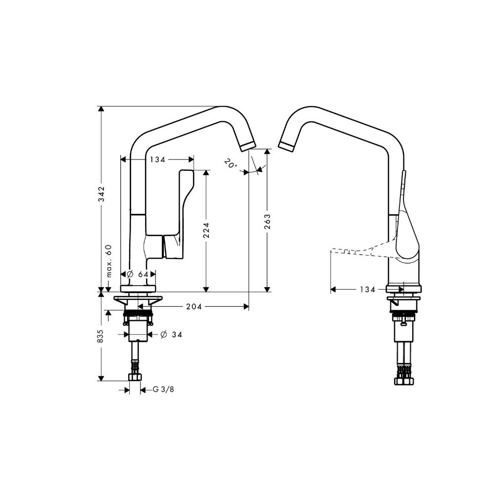 Смеситель для кухни Axor (Аксор) Citterio, однорычажный, 39850000 хром