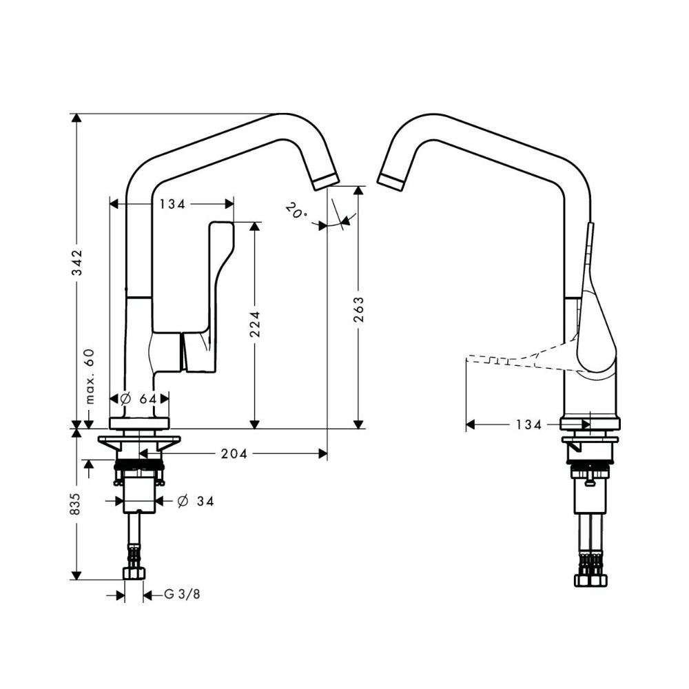Смеситель для кухни Axor (Аксор) Citterio, однорычажный, 39850800 нержавеющая сталь