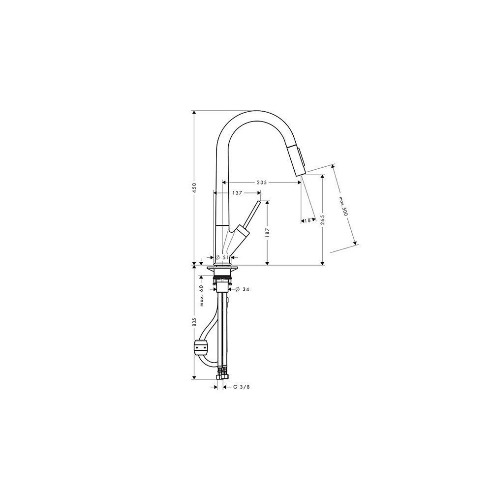 Смеситель для кухни Axor (Аксор) Starck, однорычажный, с выдвижным душем, ½ 10821000 хром