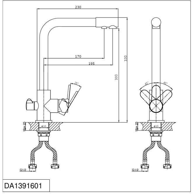 Смеситель для кухни DK (ДК) Rhein.Marx (DA1391601) с подключением к фильтру хром