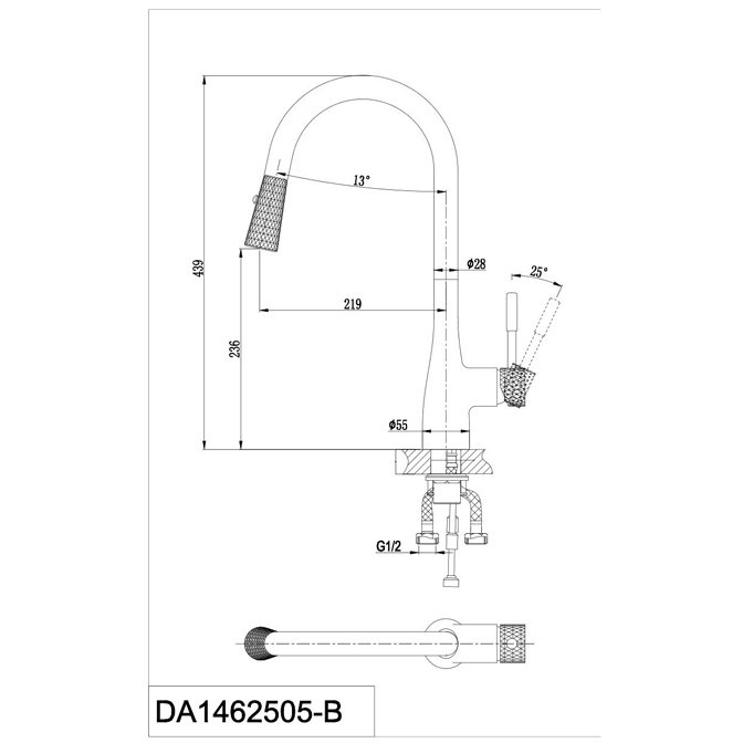 Смеситель для кухни с выдвижной лейкой D&K Rhein.Schiller DA1462505B