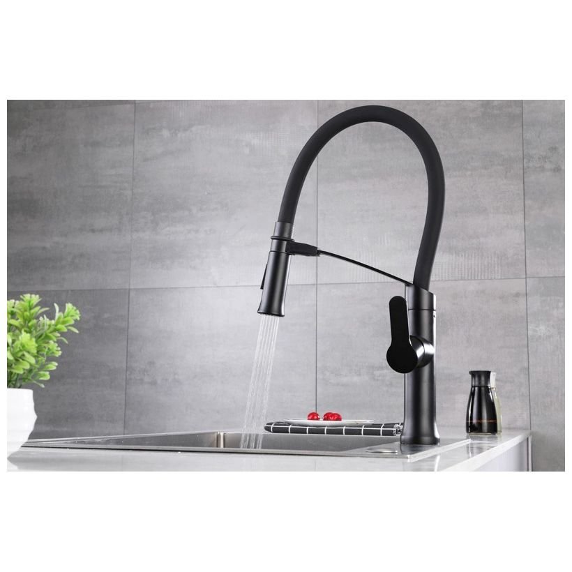 Смеситель для кухни Fashun (Фашун) (A54501-7) с магнитным фиксатором, гибким изливом сатин,черный